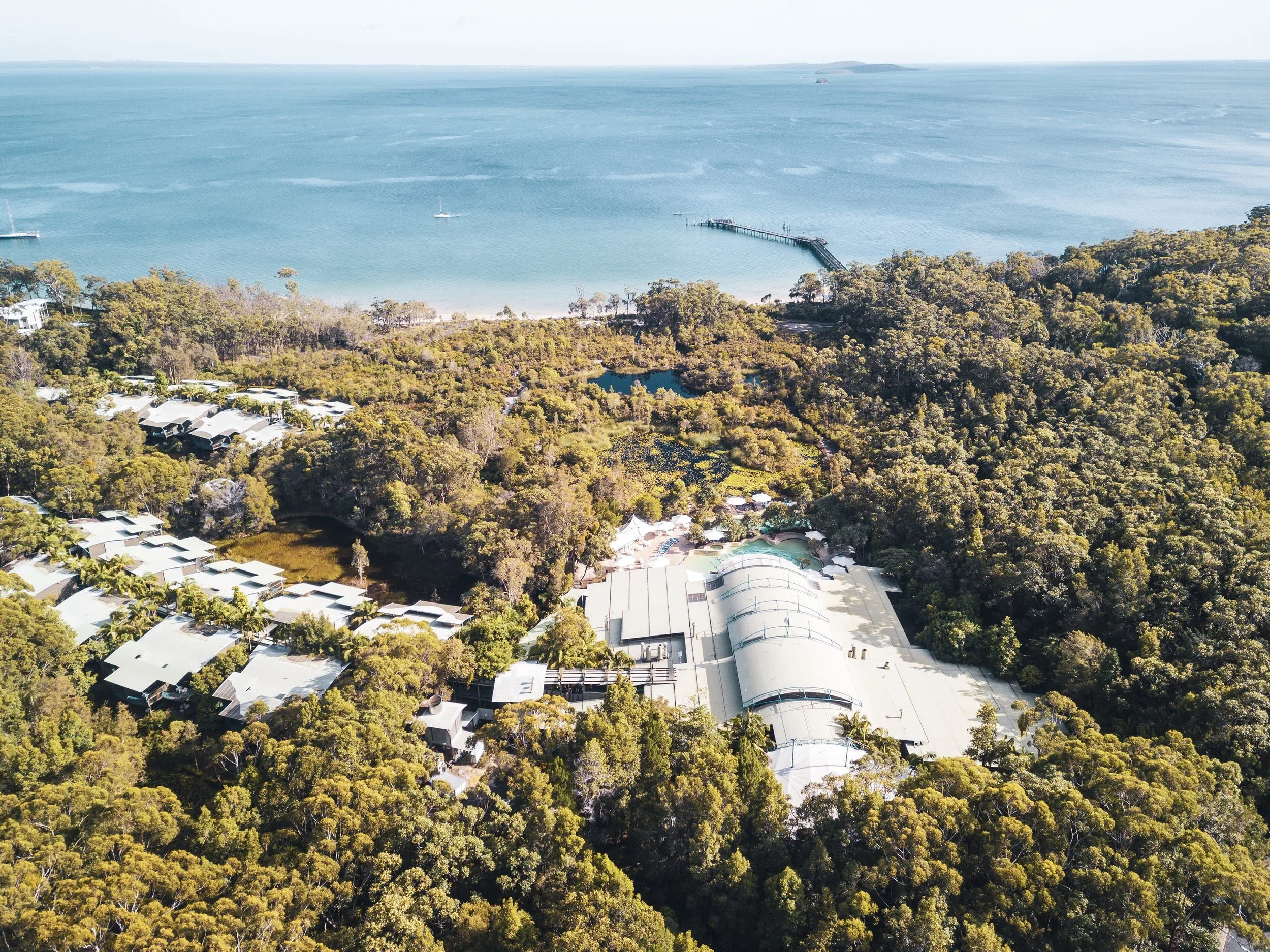 Immersed within the tranquil nature surrounds, lies this four-star eco retreat, overlooking K’gari’s calm western bay. Revel in the resort’s selection of ceremony and reception venues, with extensive accommodation options to suit your guests, including Hotel Rooms, Villas and Houses.